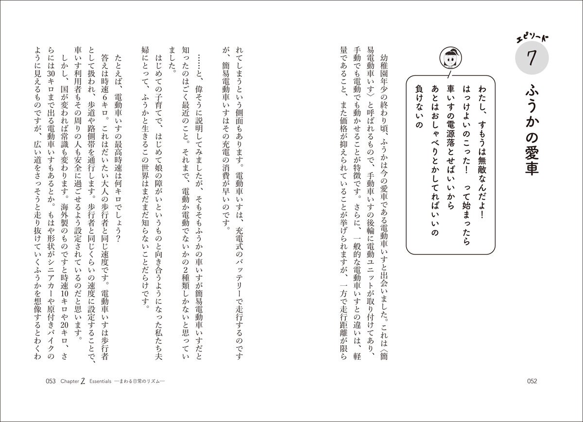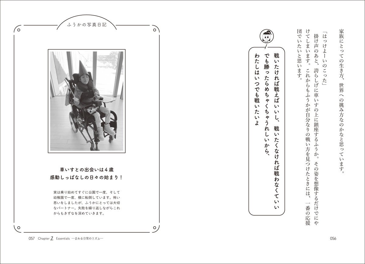 各エピソードの最初と最後には、ふうかちゃんらしさがにじみでる、ふうかちゃんのコメントを掲載。「ふうかの写真日記」では、成長とチャレンジの過程もわかります。