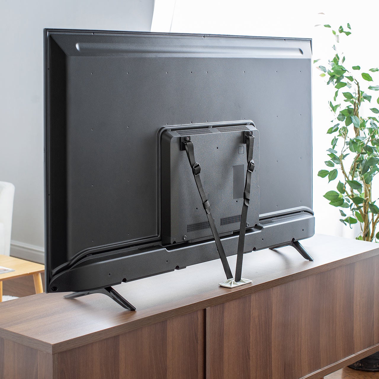 本製品は、簡単に取り付ける事が出来るテレビ転倒防止ベルトです。