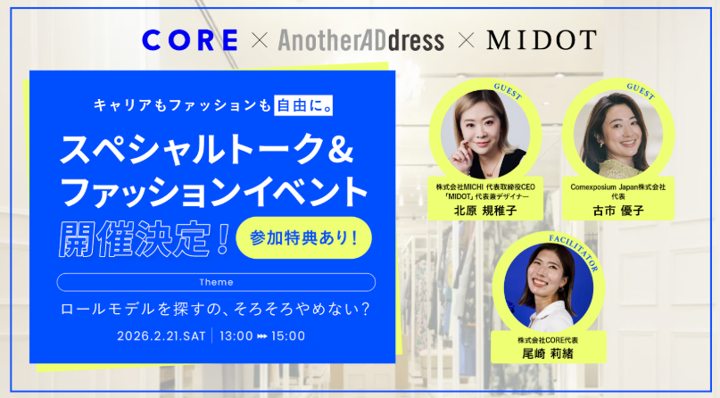 【CORE×MIDOT×AnotherADress】3社共同でファッションイベント開催!キャリアもファッションも自由に。スペシャルトーク&ファッションイベント開催!