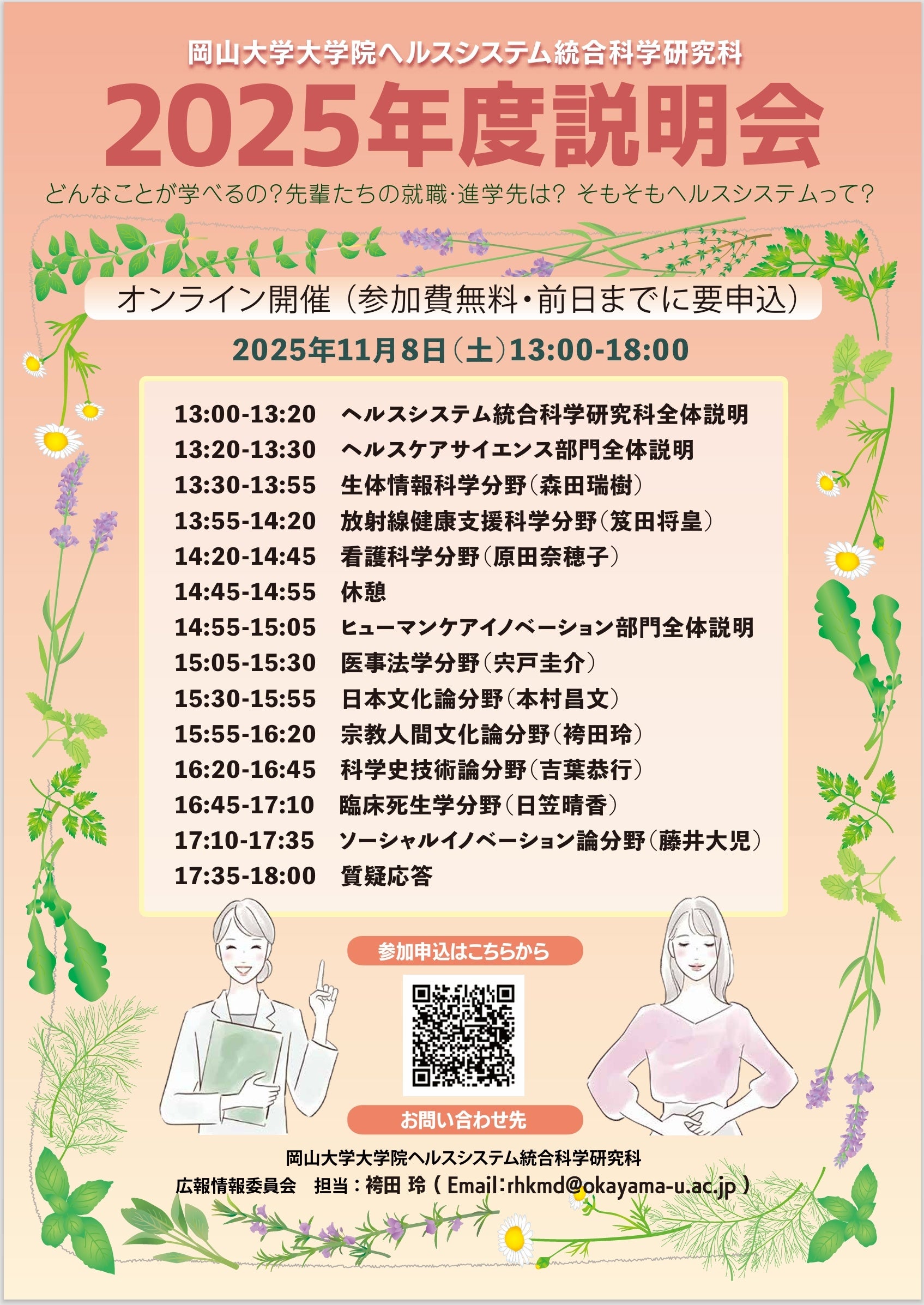 【岡山大学】岡山大学大学院ヘルスシステム統合科学研究科「2025年度オンライン説明会」〔11/8,土〕