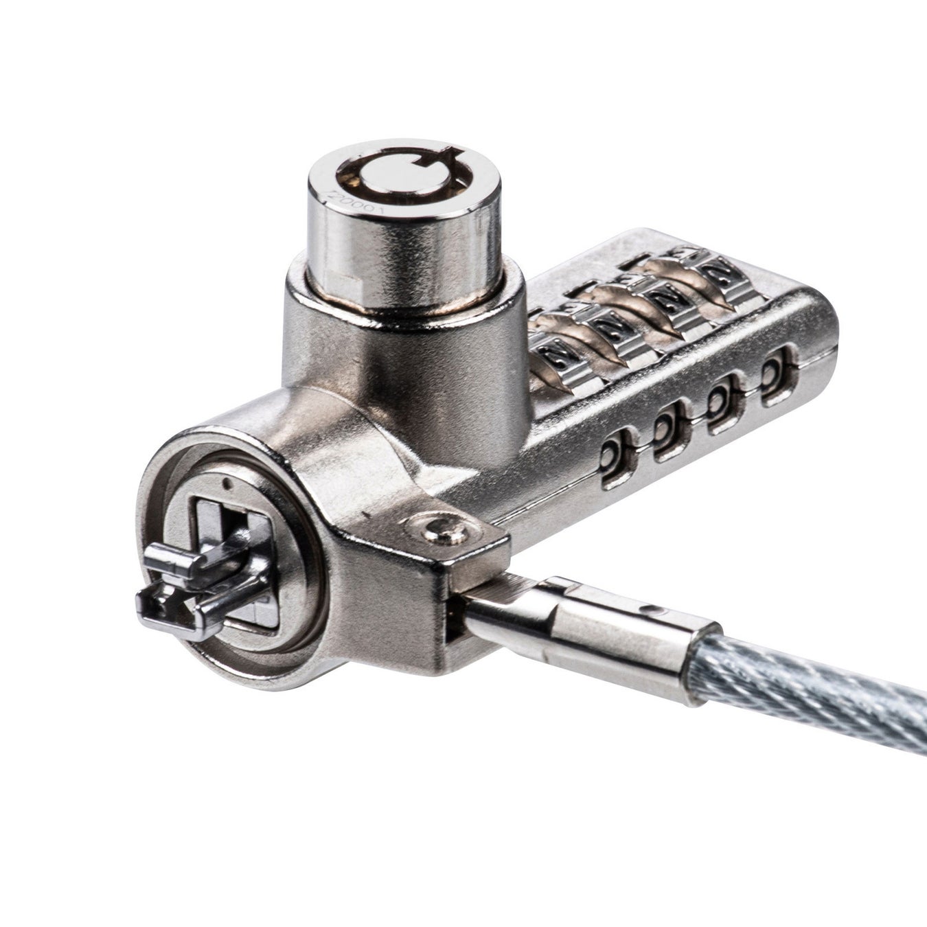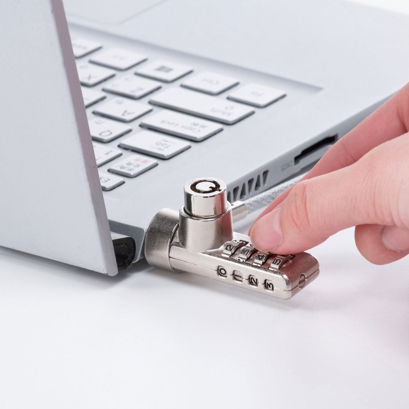 2種類の方法で開錠できるだけでなく、丈夫なワイヤーで固定できるので、機器の盗難防止におすすめの製品です。