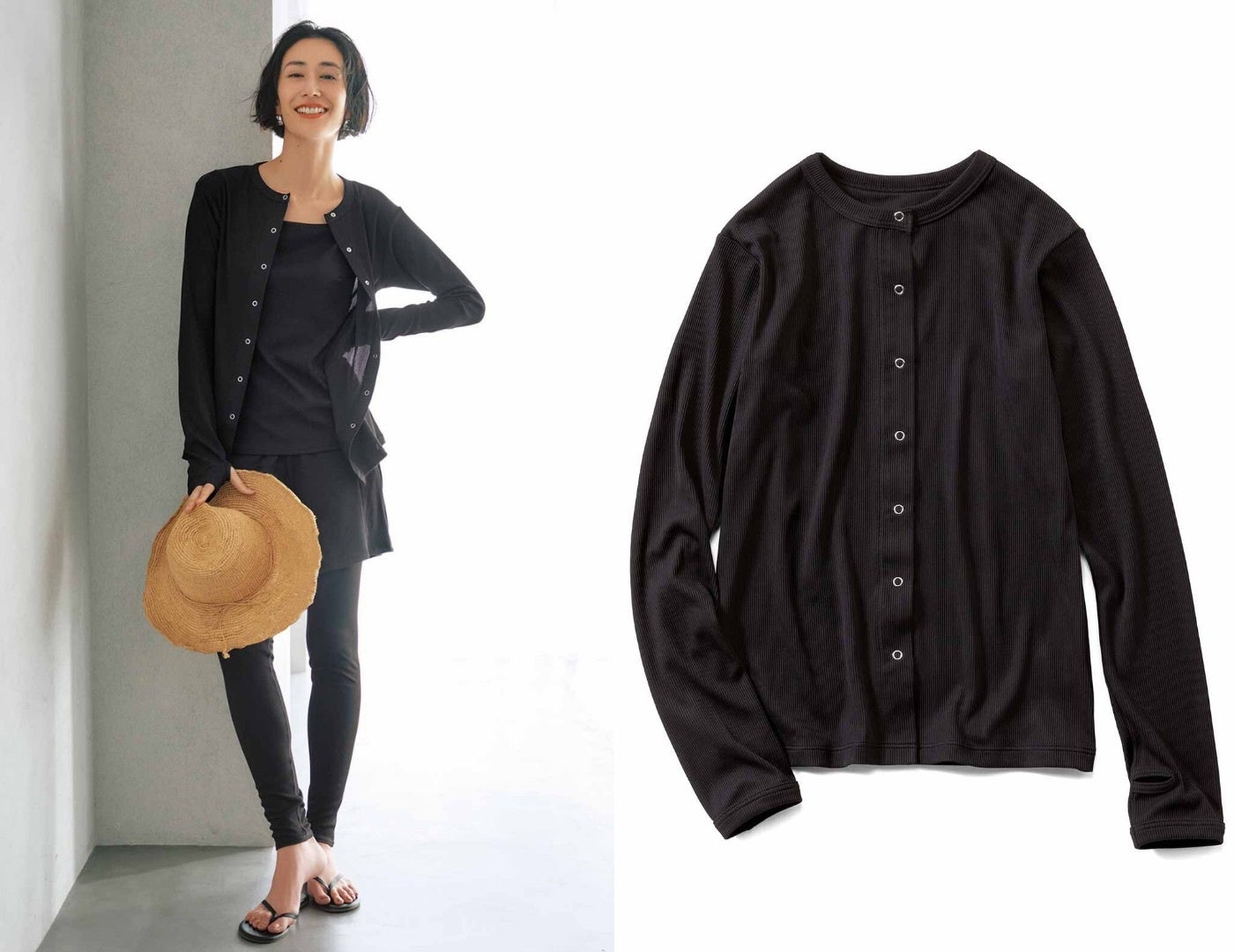 【NEW】IEDIT[イディット] 福田麻琴さんコラボ リブ素材のラッシュガードカーディガン〈ブラック〉