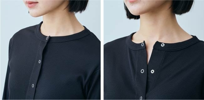 水辺だけでなく、ふだんのUV対策にも使えるカーディガンタイプのラッシュガードです。コンパクトなシルエットと安心感のある丈感で水中でも動きやすく、詰まりぎみのクルーネックで首もともしっかりカバー。全部閉じてもおしゃれなリングドットボタンが今っぽいアクセントに。
