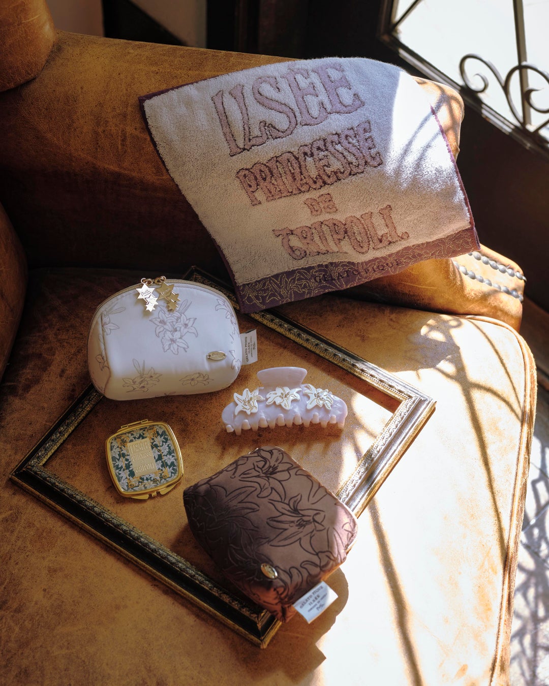 作品に描かれたリリーからインスピレーションを受けたヴィンテージライクなニットや、レース×ベロアがシックな雰囲気を放つアイテムなど、ルームウェアや雑貨全18型がラインアップ