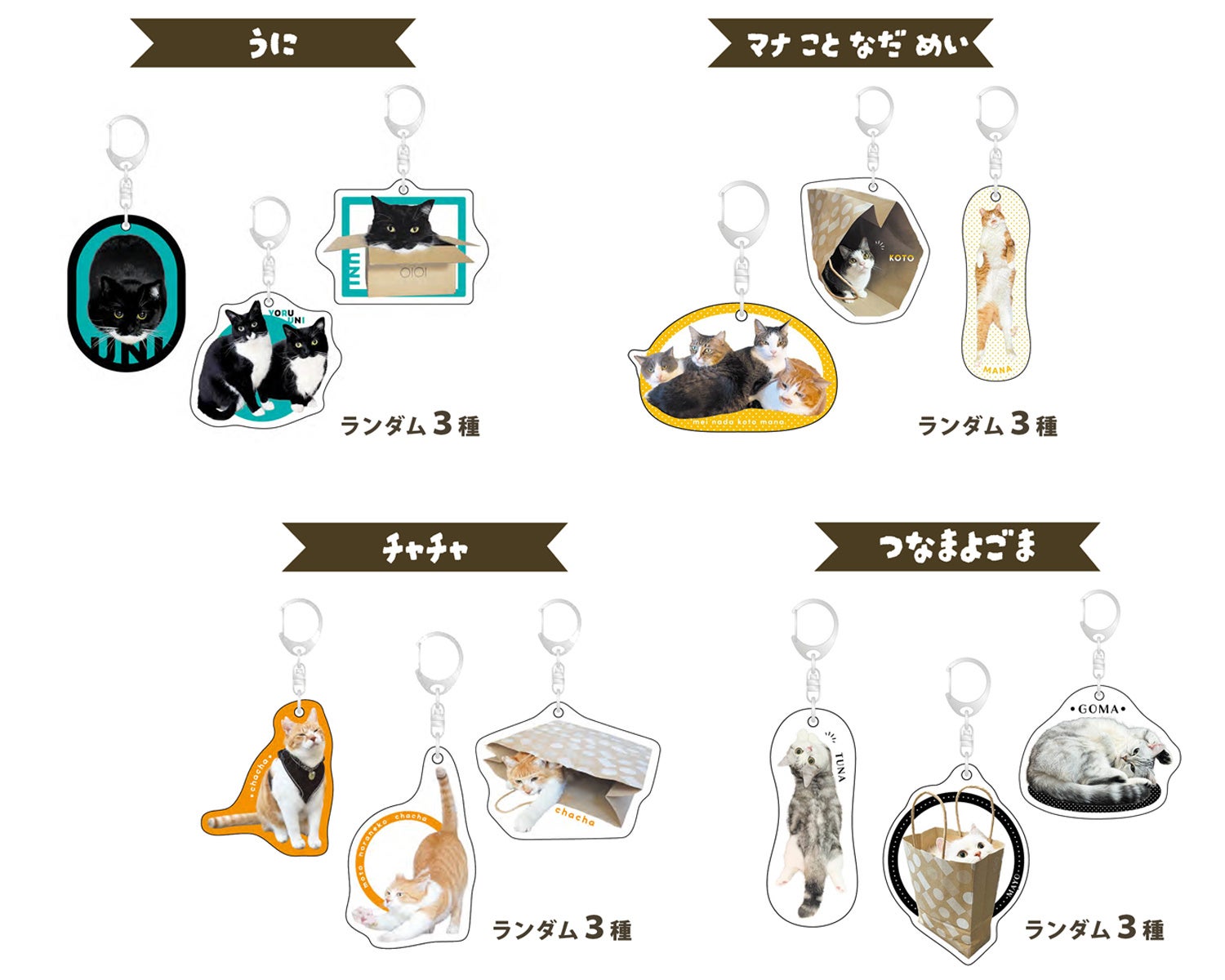・アクリルキーホルダー(全4種×ランダム3パターン) 各1,100円(税込)