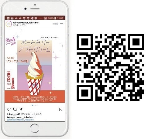 2024年7月3日(水)1日限定で、Instagramで下記の条件を満たした投稿画面を「Ready go round mini」の店頭で提示すると、クーポン券と同じく「神戸ポートタワー ソフトクリーム」が50円引きとなります。※クーポンとの併用は不可。