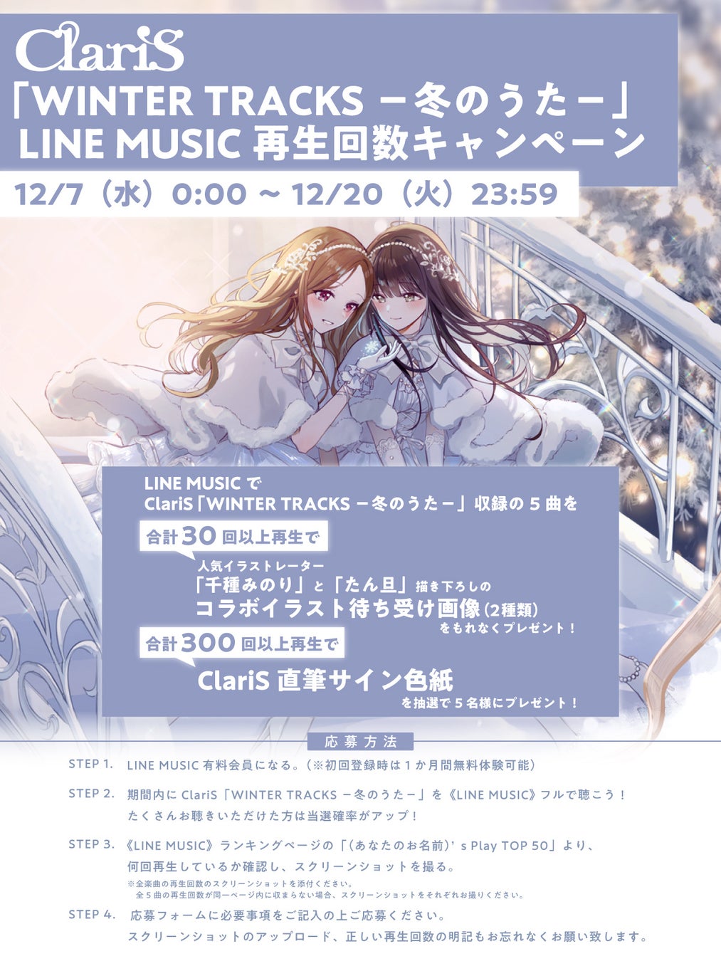 ClariSミニアルバム「WINTER TRACKS ―冬のうた―」の発売を記念してLINE MUSIC再生キャンペーンを開催!ぜひ、ご参加ください!たくさん聴いてくださった方は当選確率アップ!
