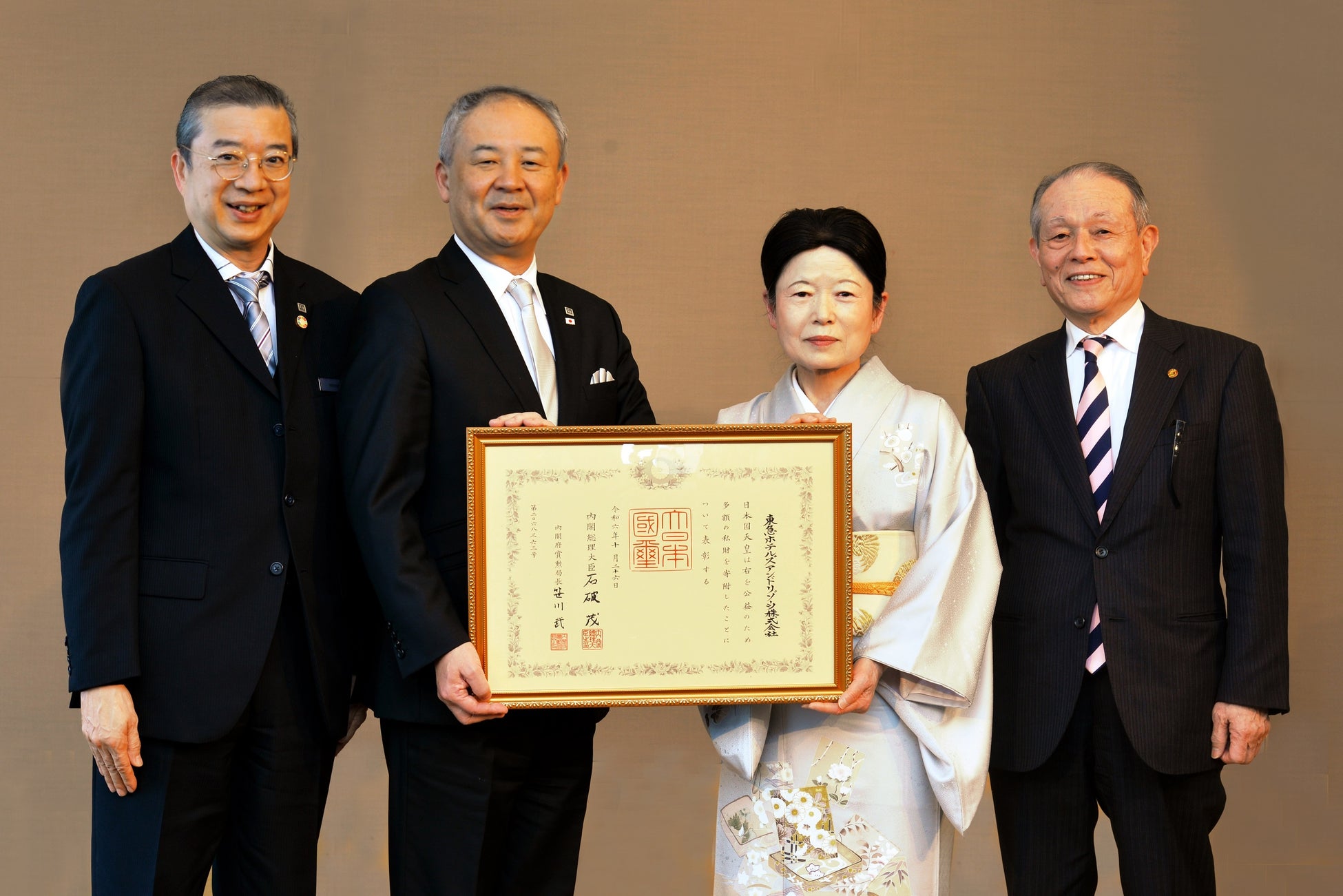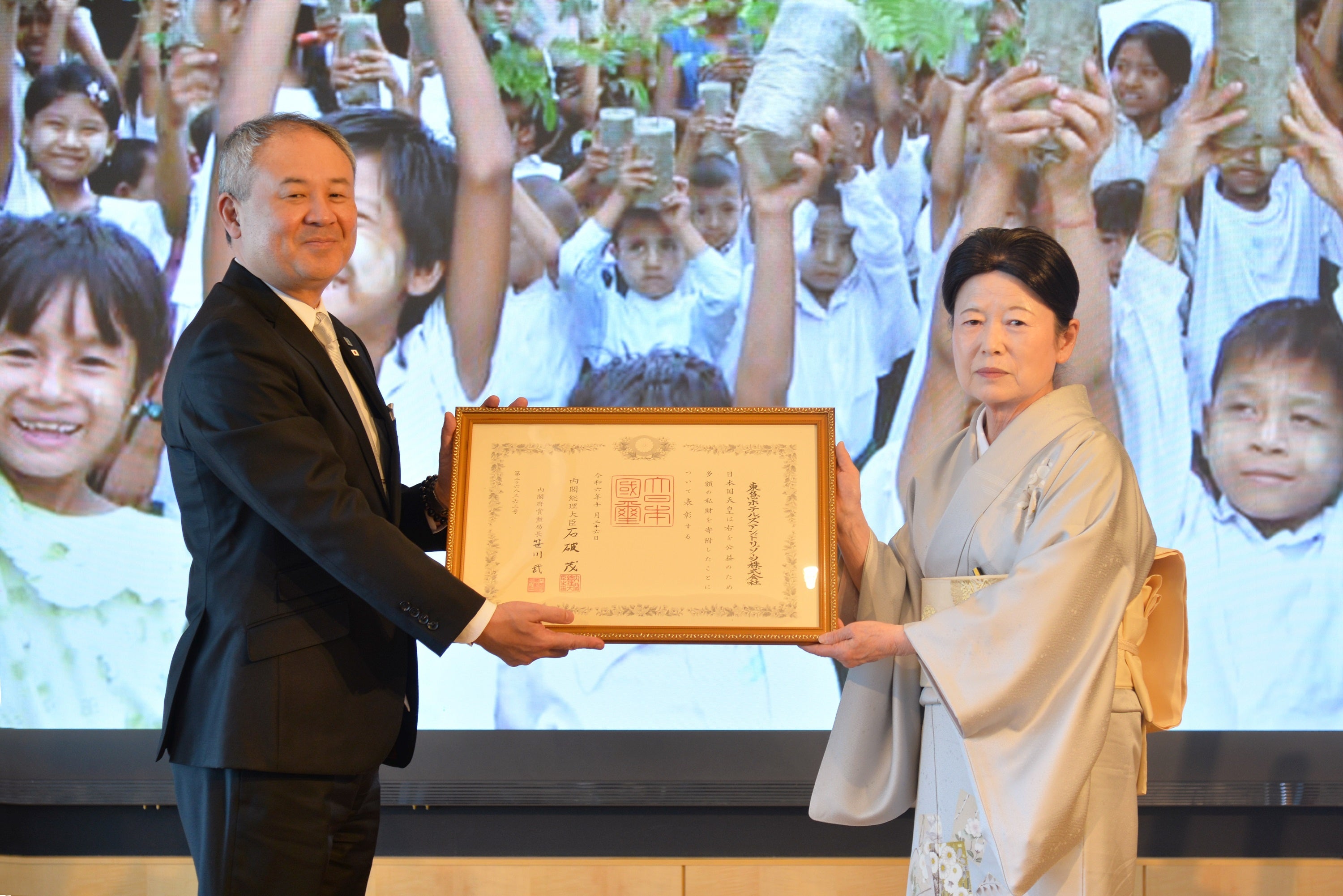 東急ホテルズ&リゾーツ株式会社(東京都渋谷区、取締役社長 村井 淳)は、公益財団法人オイスカ(東京都杉並区、理事長 中野 悦子、以下「オイスカ」)に推薦いただき、昨年秋、紺綬褒章を受章しました。このたび褒状(賞状)を授与されましたので、あらためてお知らせいたします。