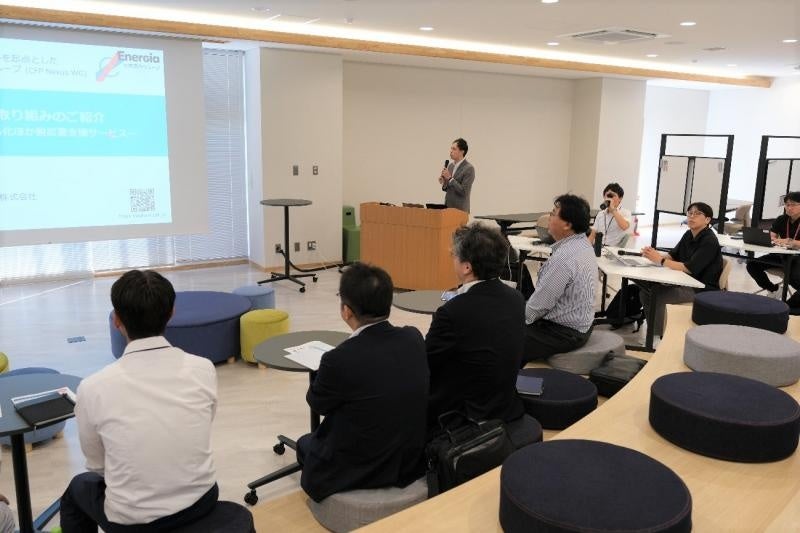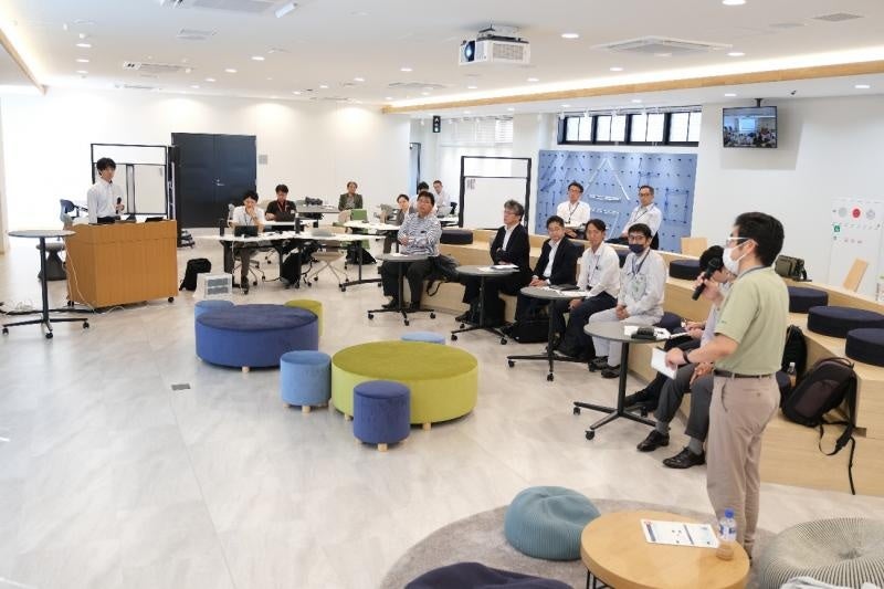 CFP Nexus WGは、カーボンフットプリント(CFP)を起点に、地域企業の競争力強化やGX(グリーントランスフォーメーション)の実現を目指して、産学官金が連携して定期的な意見交換と実証活動を進めています。当日は、オンラインを含め、企業関係者や研究者、学生、金融機関など約40人が参加しました。
