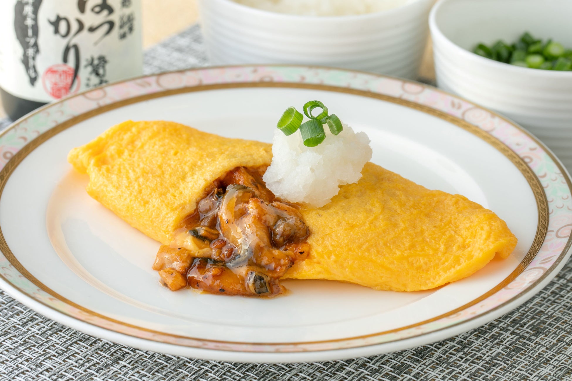 大きな窓のある開放的な店内で、埼玉県産のお米や卵を使用したオムレツなど、