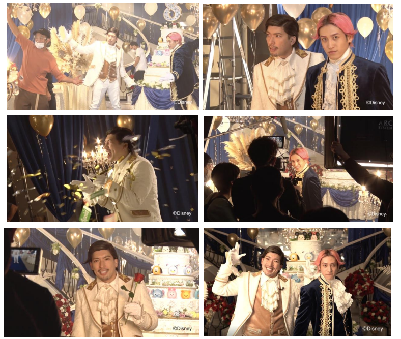 撮影の合間は、お互いに声を掛け合いながら入念に動きをチェックする仲睦まじい姿も。細かな目線や仕草まで王子になりきり表情がとても豊かなりんたろー。さんと、おちゃめな動きで明るい雰囲気を作り出す兼近さんが絶妙なバランスでツムツム好きな王子を見事に演じきりました。