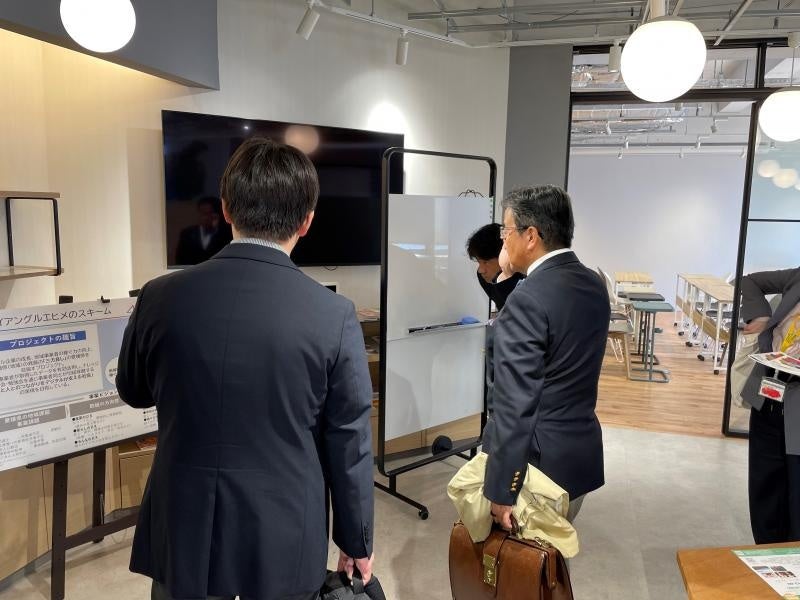 意見交換後は、愛媛県庁内に整備された官民共創拠点「トライアングルベース」などを視察し、本学および岡山市の担当者を交えて、両地域が連携して進める具体的な取り組みについて検討を行いました。