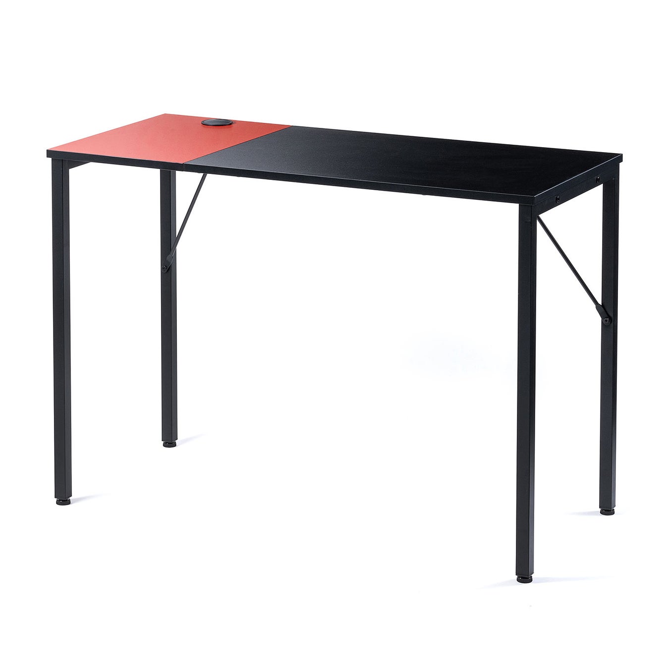 ゲーミングデスク ワークデスク テレワーク ブラック×レッド ケーブル通し付き モニターアーム取付対応 幅100cm 奥行45cm