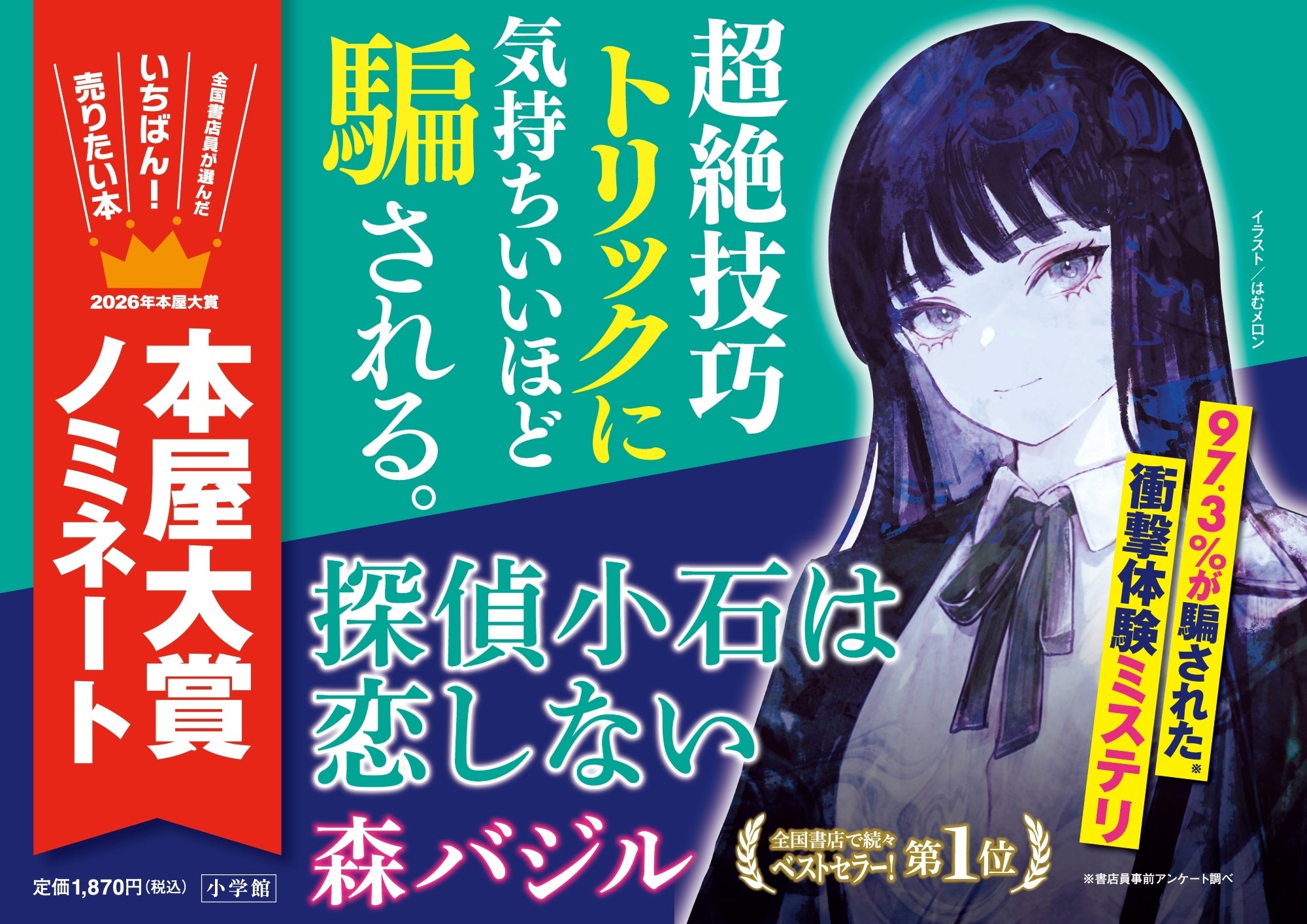 松本清張賞でデビューした大注目の新鋭、森バジルさんの最新作『探偵小石は恋しない』(2025年9月18日発売、小学館)が2026年本屋大賞にノミネートされました!