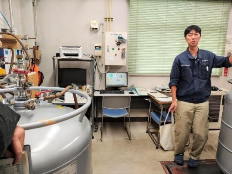 また、使用済み設備などから液体ヘリウムを回収する「HeliGet」事業に関しても情報交換を実施。岩手大学からは、近隣大学のMRI装置(磁気共鳴画像診断装置)からのヘリウム回収事業における現状と課題について説明があり、現場の見学も行いました。また、見学の後、今後の回収事業における協力体制についても議論しました。