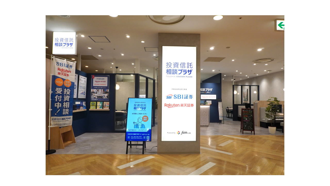 「投資信託相談プラザ」は、SBI証券・楽天証券などと提携し、投資信託をはじめとした金融商品の選び方や見直し方を独立系ファイナンシャルアドバイザー(IFA)に無料でご相談いただける、全国的にも新しい資産運用の相談専門店です。全国14店舗やオンラインで、証券会社選びから各種制度の活用アドバイスをお客さま一人ひとりに合った資産運用をサポートしています。