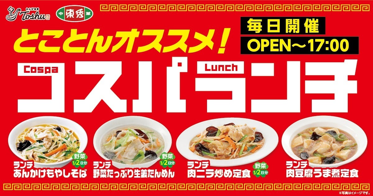 中華料理店「れんげ食堂Toshu」「中華東秀」を展開しているイオングループのオリジン東秀株式会社(本社:東京都調布市/代表:沢村 弘也)は、11月16日(水)より、ランチメニュー「コスパランチ」をリニューアルいたします。