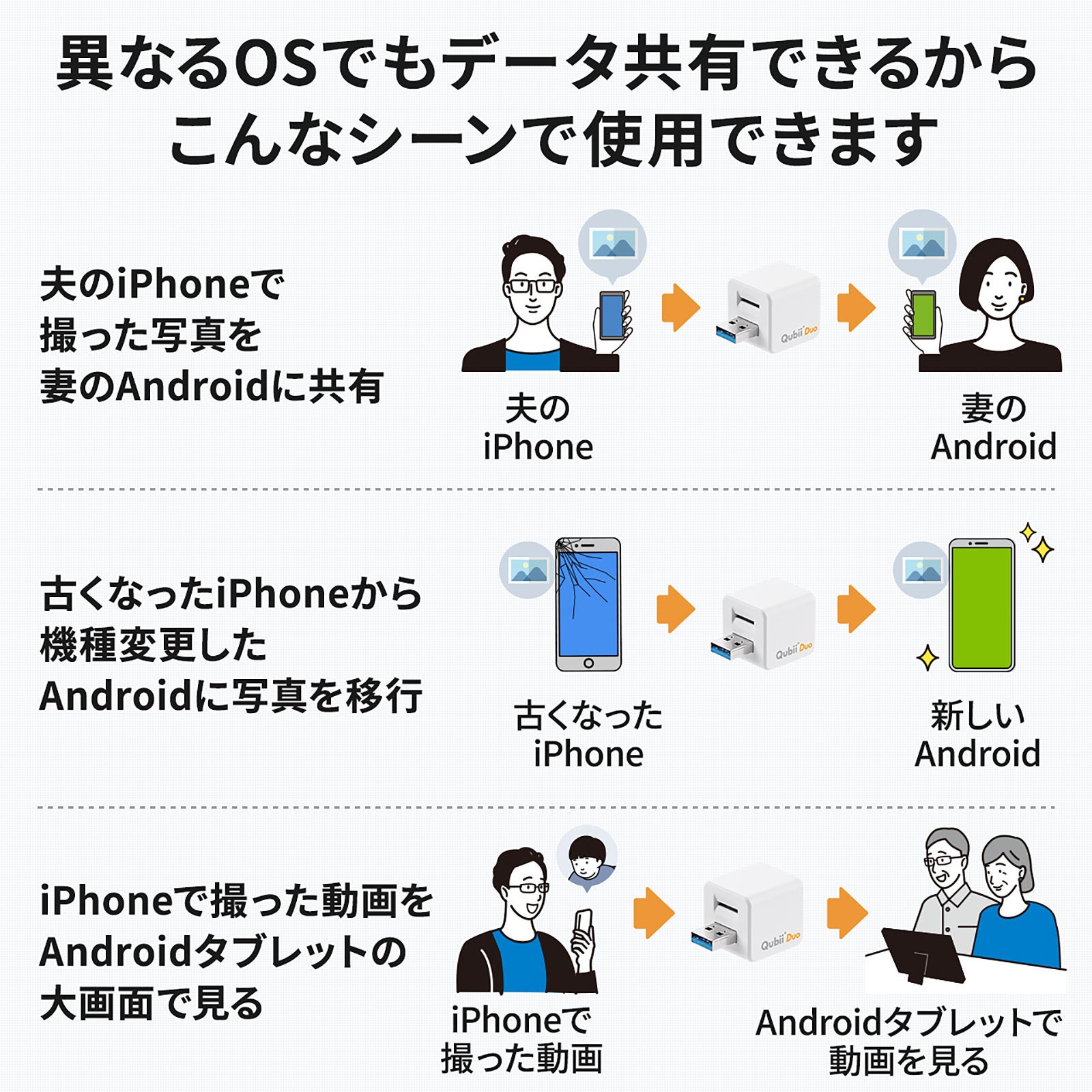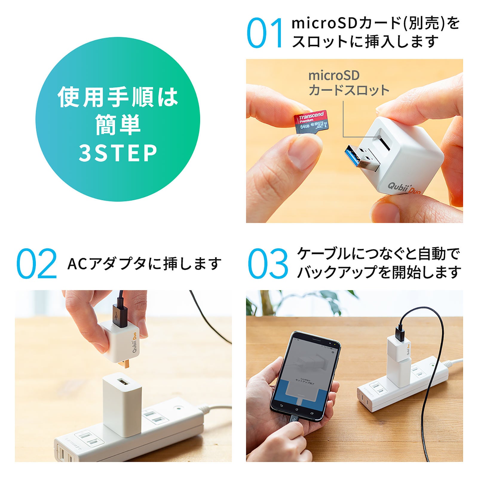 Qubii Duo iPhone iPad Android 自動バックアップ