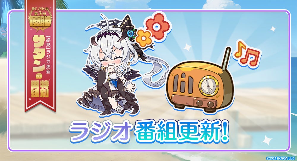 本日メンテナンス後より、第3回FCバトルで1位に輝いた「サタン」の特別番組が期間限定で放送中!