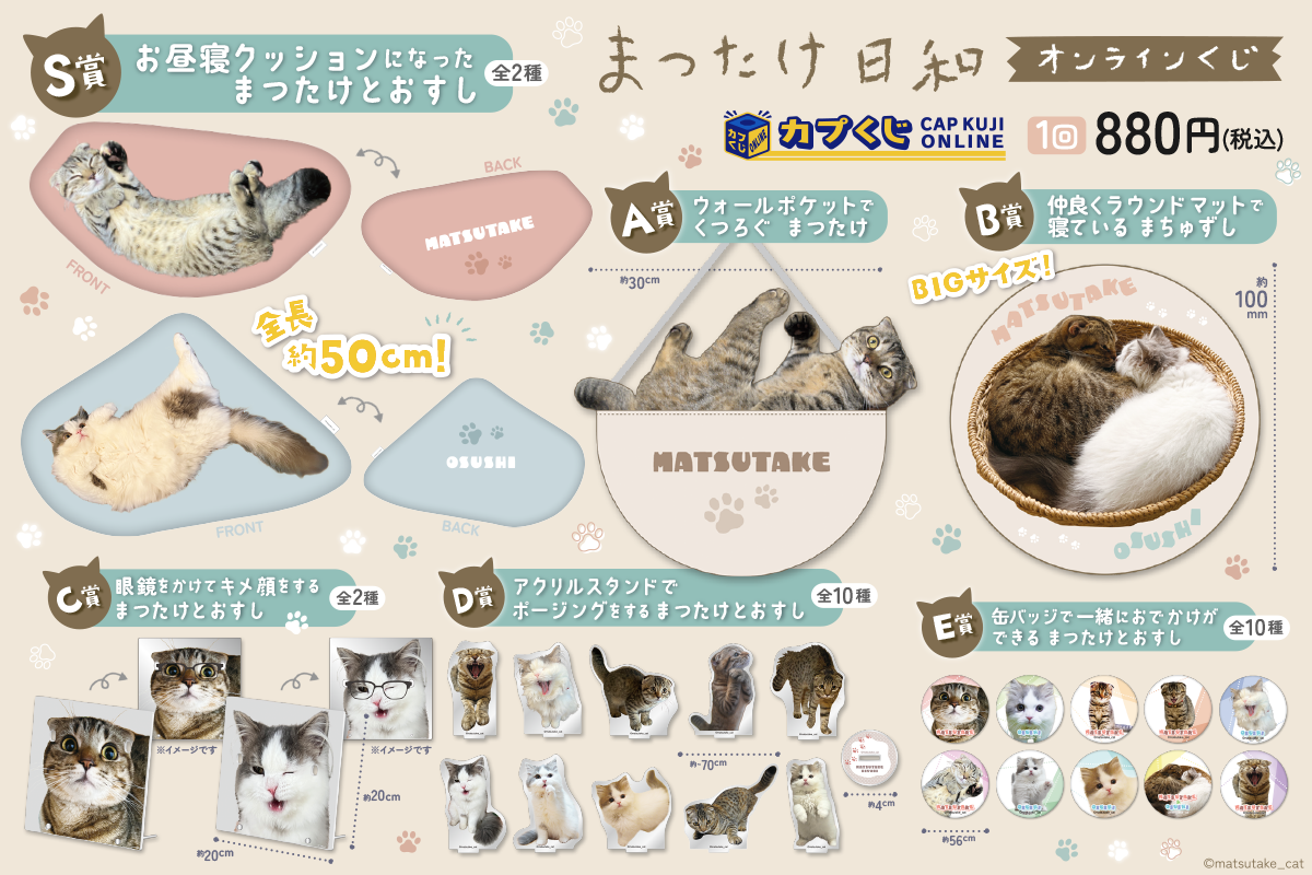 『カプくじオンライン』に、SNS総フォロワー数20万人超えの『まつたけ日和』とのコラボが決定! 撮り下ろし写真などを使用した豪華景品が登場!