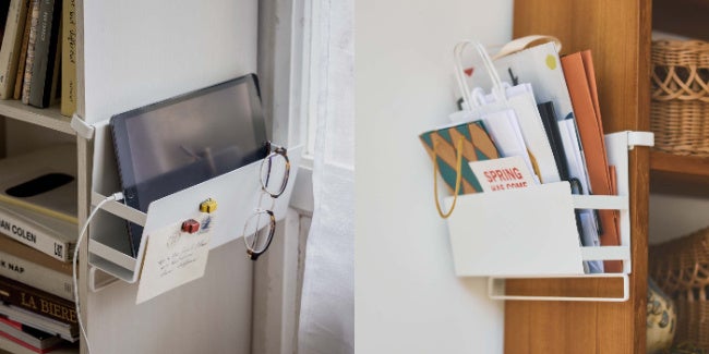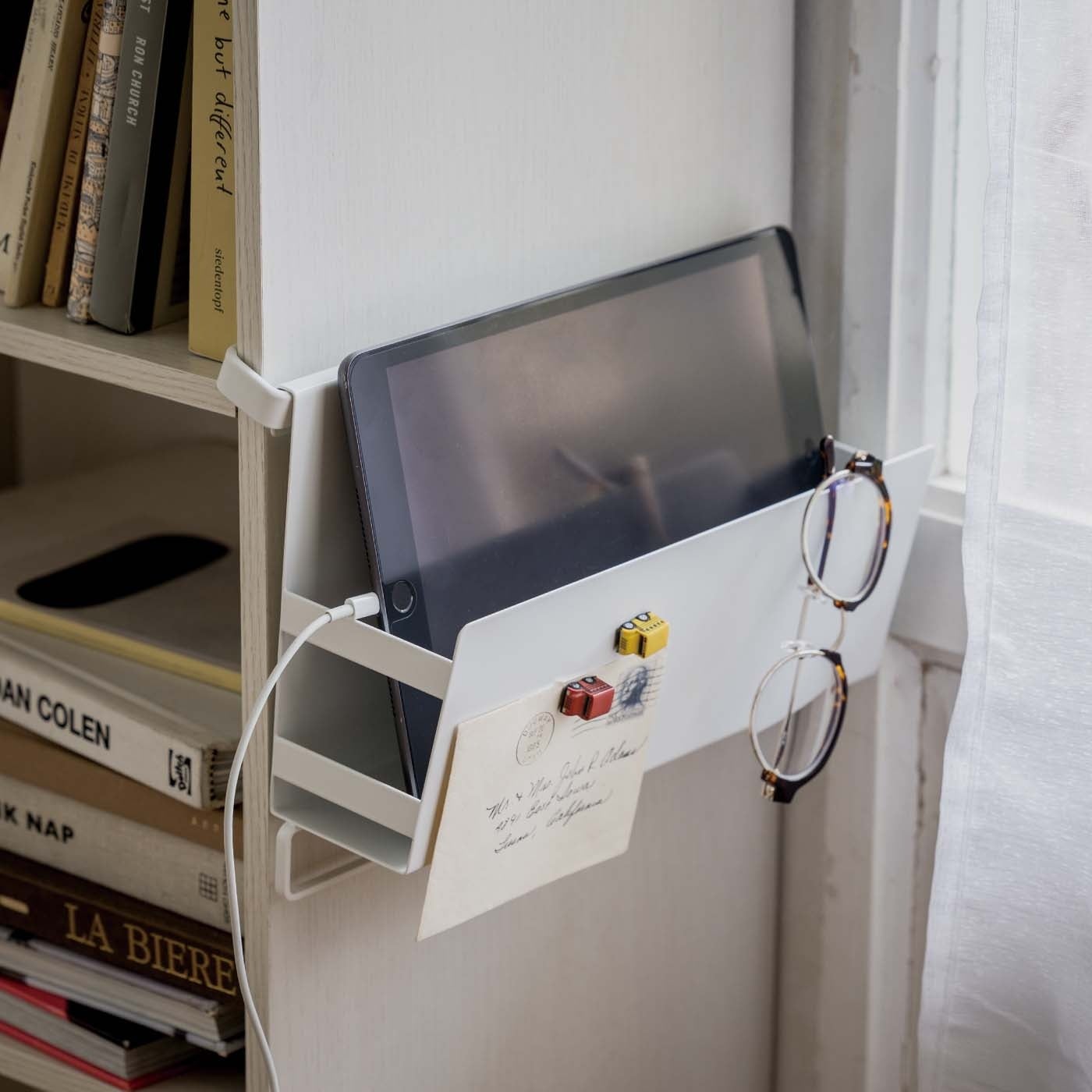 11インチのタブレットも入るサイズです。サイドが開いているので充電しながら収納することもできます。つい集めてしまう紙袋も、とりあえず置くだけでかわいく整理できます。