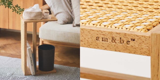 【NEW】am&be ソファやベッドに差し込める ラタン風透かし編みサイドテーブル