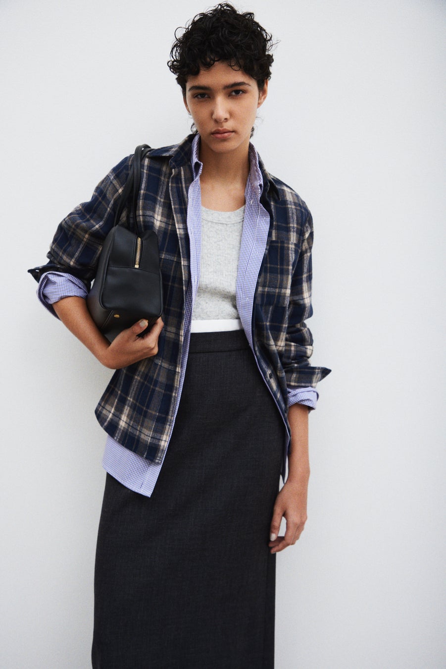 シーズンの端境期から秋のムードを薫らせる、ベーシックなブラックと多彩なチェック柄を掛け合わせたコレクション