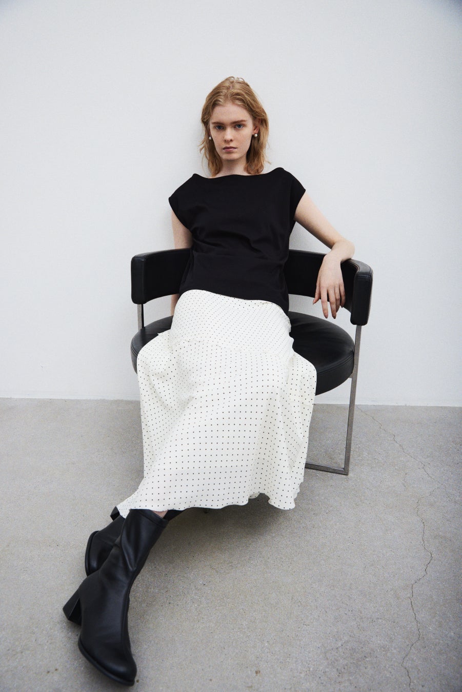 着こなしの必需品であるベーシックなブラックカラーとの掛け合わせで、暑さが厳しい中でも秋のムードを感じさせる晩夏&初秋の着こなしを提案しています。