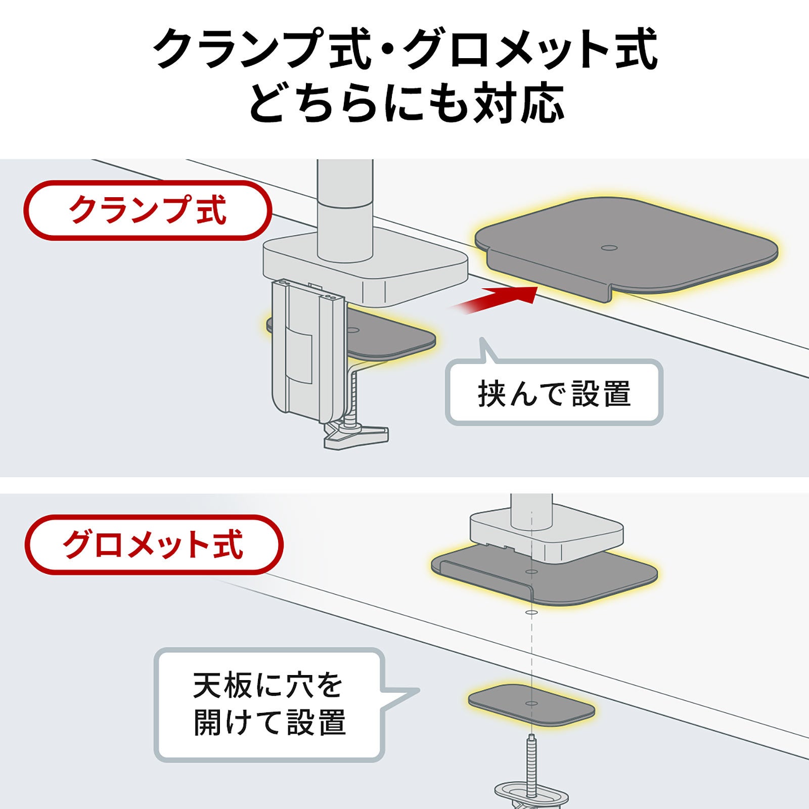 サンワサプライ株式会社(本社:岡山市北区田町1-10-1、 代表取締役社長 山田 和範)が運営している直販サイト『サンワダイレクト』では、モニターアーム使用時の机のたわみ防止や負荷を軽減でき、傷つきも防止できるクランプ式、グロメット式それぞれに対応したモニターアーム設置用の補強プレート 「100-LA065」を発売しました。