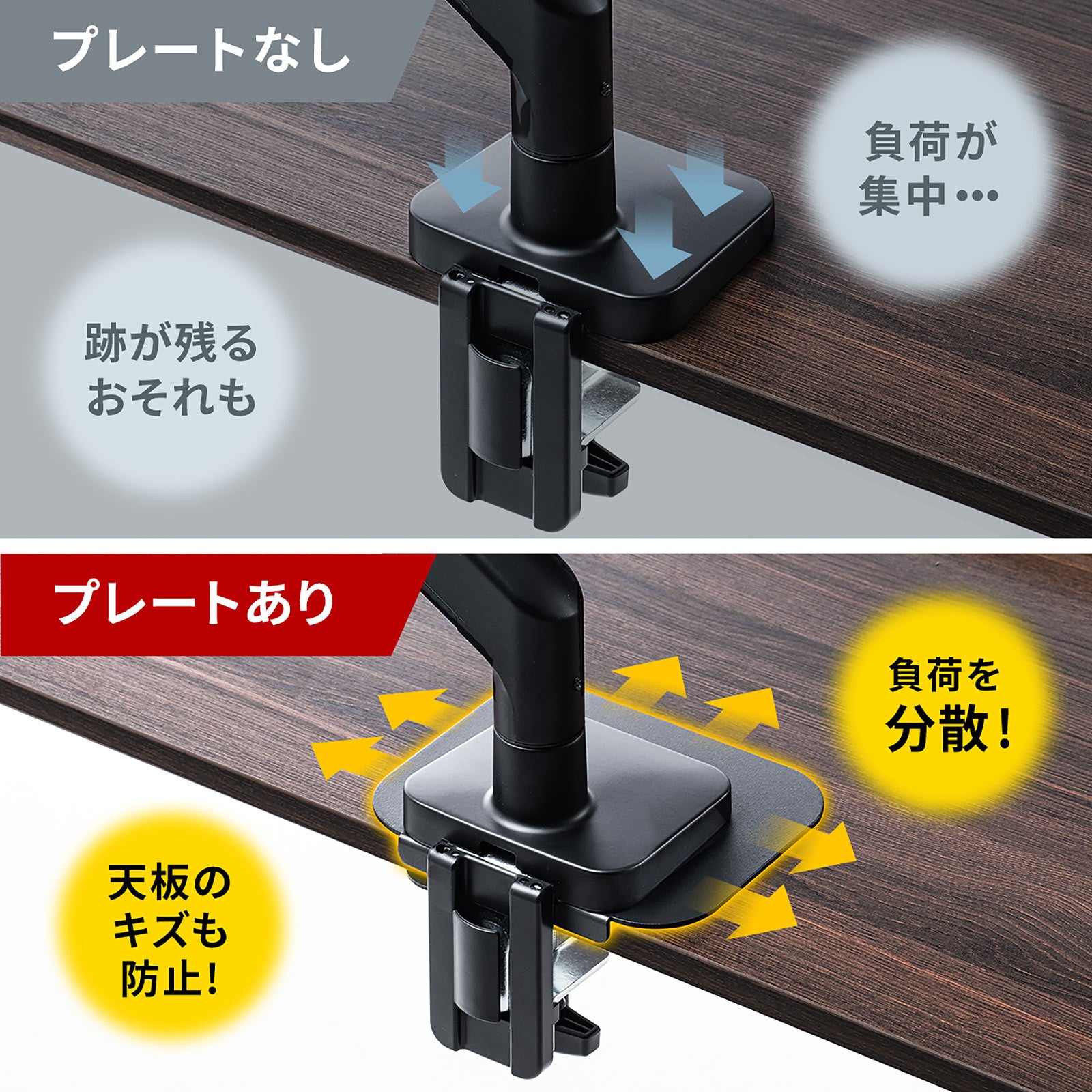 モニターアーム 補強プレート 黒 グロメット対応 スチール製 傷防止 デスク保護