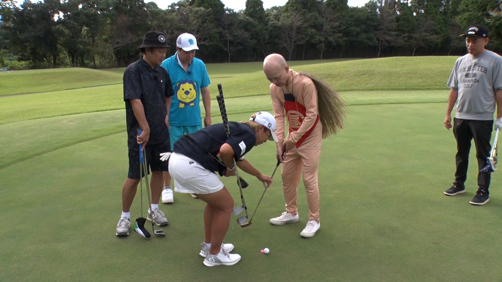 全員でティーショットを打ち、メンバーのなかからベストボールを選択する「ベストボール選択ホール」、ミスショットの場合、一度だけ“打ち直し”が可能な「打ち直しカードホール」、両チーム必ずどこかで初心者の昼メシくんを使わなければならない「昼メシくん代打ホール」、タカトシが直接対決する「タカトシリーダー対決ホール」など、真剣勝負のなかにバラエティーに富んだルールが追加され、メンバーも翻弄されていきます。