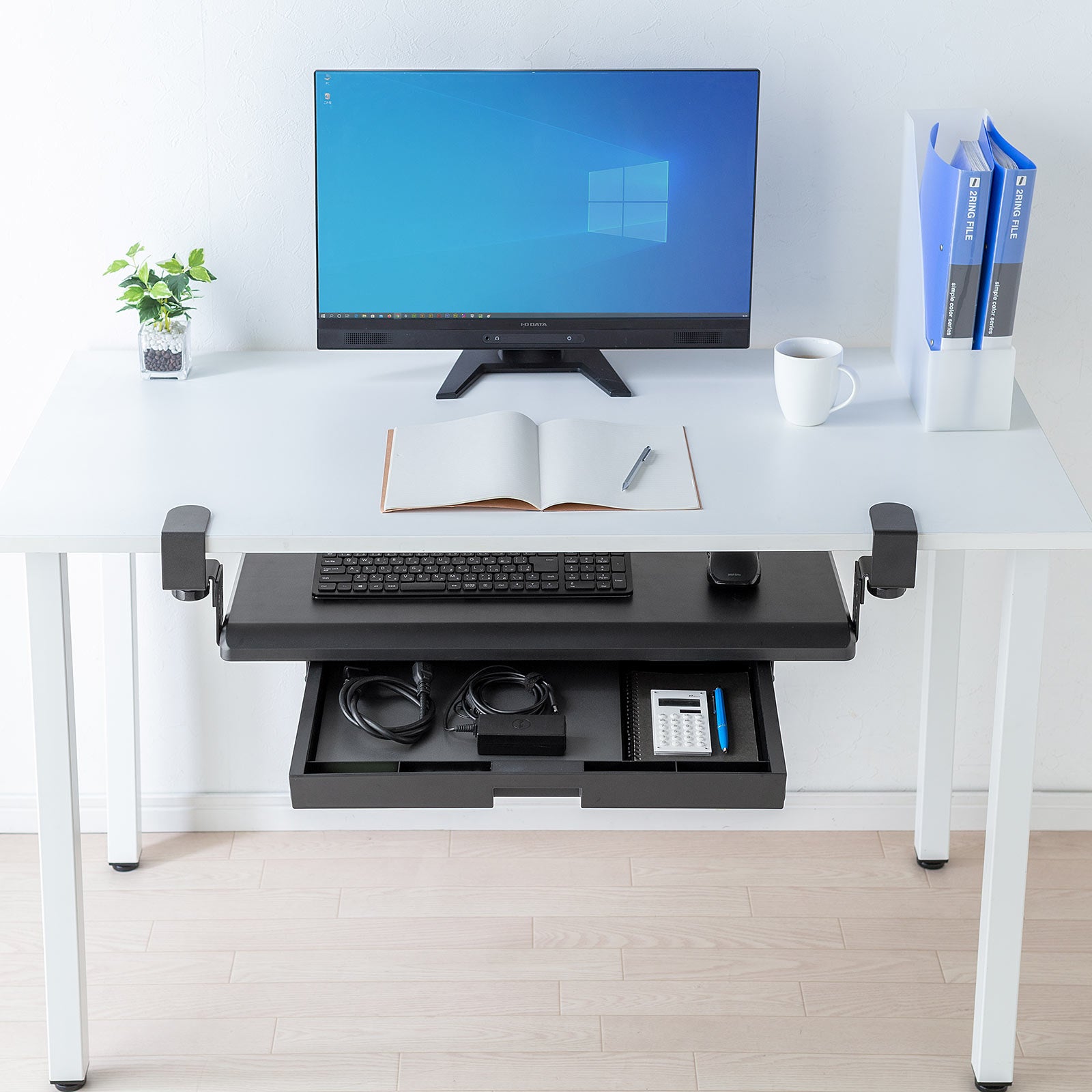 サンワサプライ株式会社(本社:岡山市北区田町1-10-1、 代表取締役社長 山田 和範)が運営している直販サイト『サンワダイレクト』では、デスクに後付けして収納スペースを追加できる、クランプ固定式の引き出し付きキーボードスライダー「100-KB010」を発売しました。