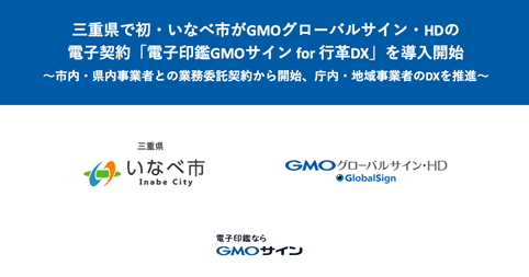 GMOインターネットグループのGMOグローバルサイン・ホールディングス株式会社(代表取締役社長:青山 満 以下、GMOグローバルサイン・HD)は、電子契約サービス「電子印鑑GMOサイン for 行革DX」について、三重県いなべ市(市長:日沖 靖 以下、いなべ市)に導入が決定し、2022年4月1日(金)より運用が開始されたことをお知らせいたします。