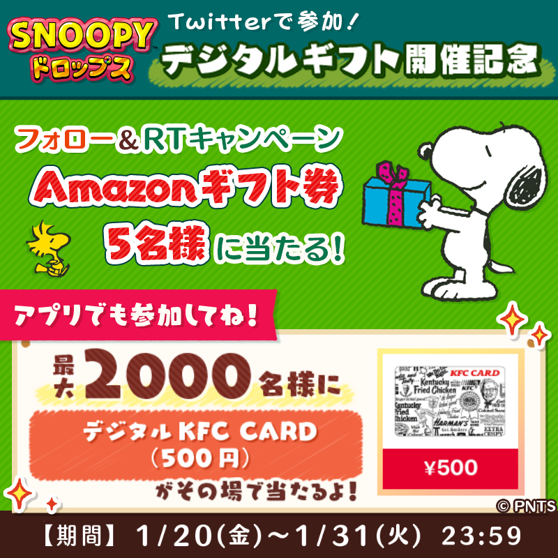 公式Twitter『スヌーピードロップス』をフォローしてリツイートするだけなので、皆さん奮ってご参加ください!