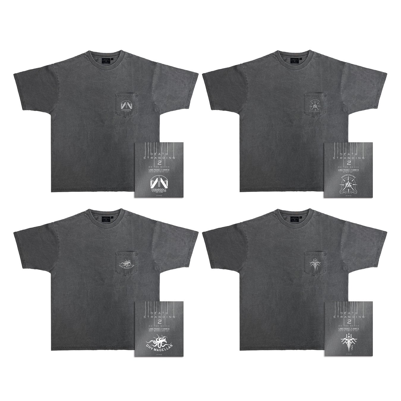 パッケージにも採用されている、主人公サム(ノーマン・リーダス)とBBの象徴的なキービジュアルを特別に採用したスペシャルな一着と、『デス・ストランディング 2 』の発売を記念した世界12ヶ所を巡るツアーイベント『DEATH STRANDING WORLD STRAND TOUR 2』とのコラボレーションTシャツを販売。