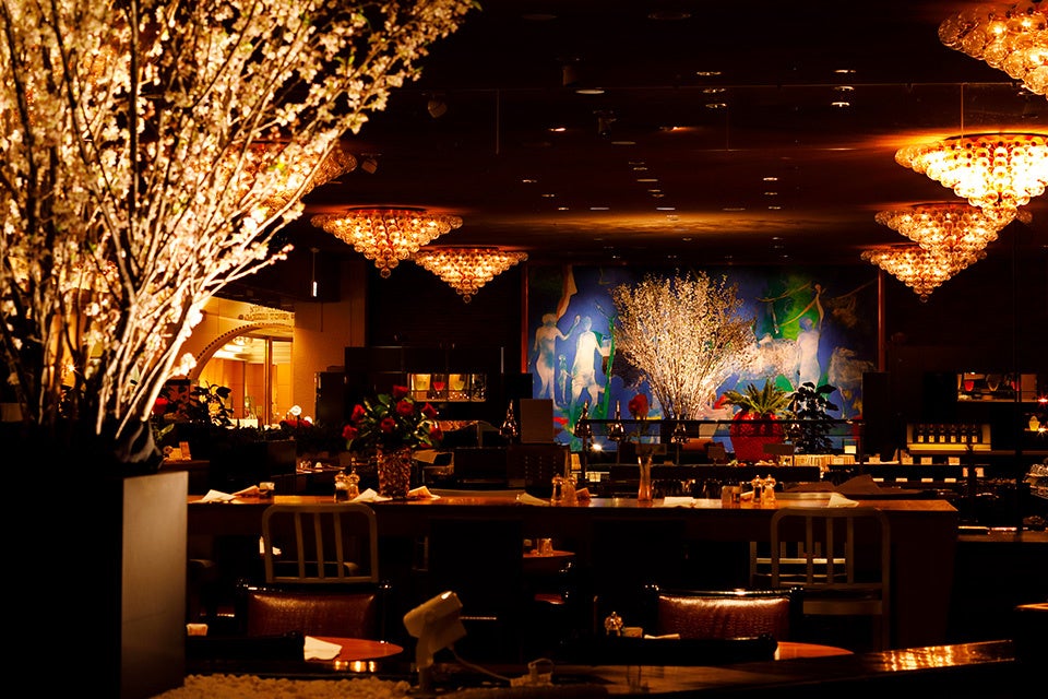 天候に左右されないお花見を実現!レストラン・バーでは、迫力の桜がお出迎え。