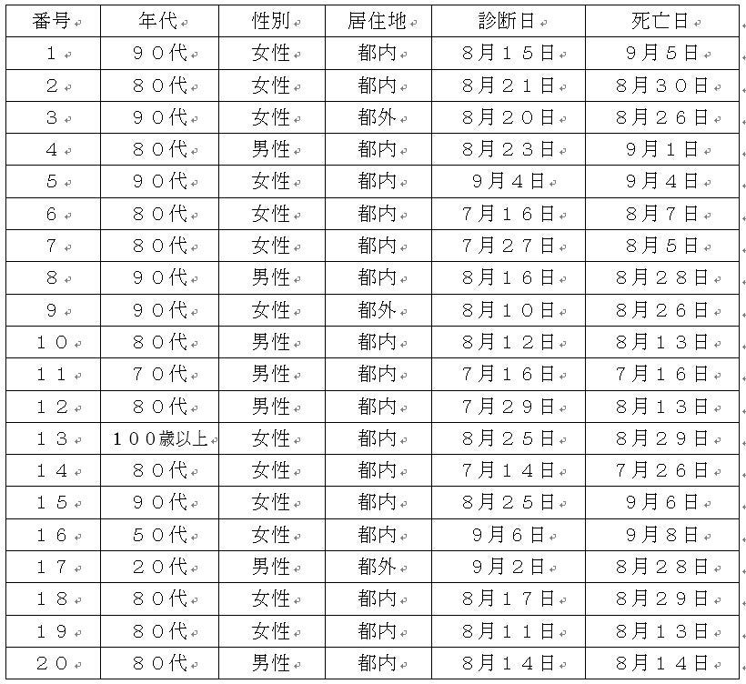 都内で新型コロナウイルスに感染した方が死亡されましたのでお知らせします。