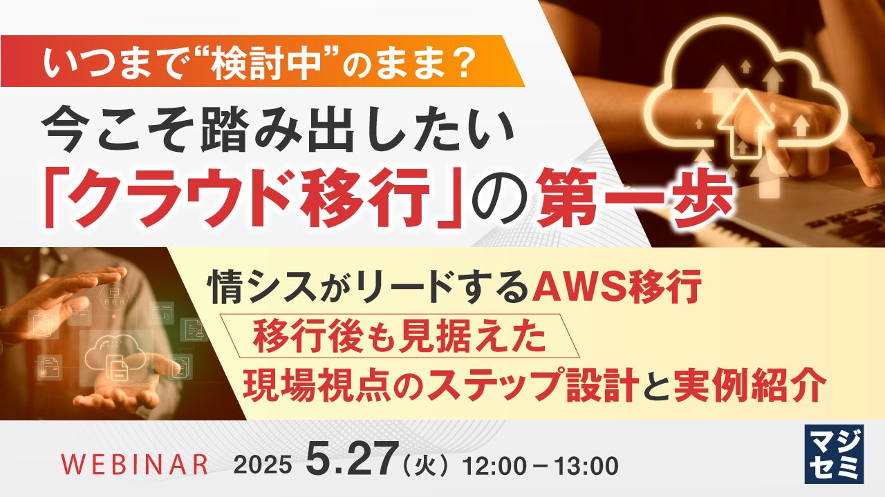 マジセミ株式会社は「いつまで“検討中”のまま? 今こそ踏み出したい「クラウド移行」の第一歩」というテーマのウェビナーを開催します。