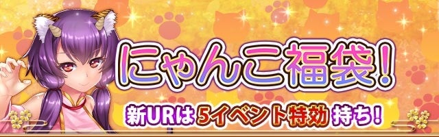7/23(土)17:00から「にゃんこ福袋」が開催中です! 猫耳姿の【UR-虎猫の誘惑-義姫】と出会って、イベントを有利に進めよう♪ 道場、戦乱、立志伝、討伐、漫遊記の5イベント特効持ちです♪ 詳細はゲーム内でお知らせをご確認ください。
