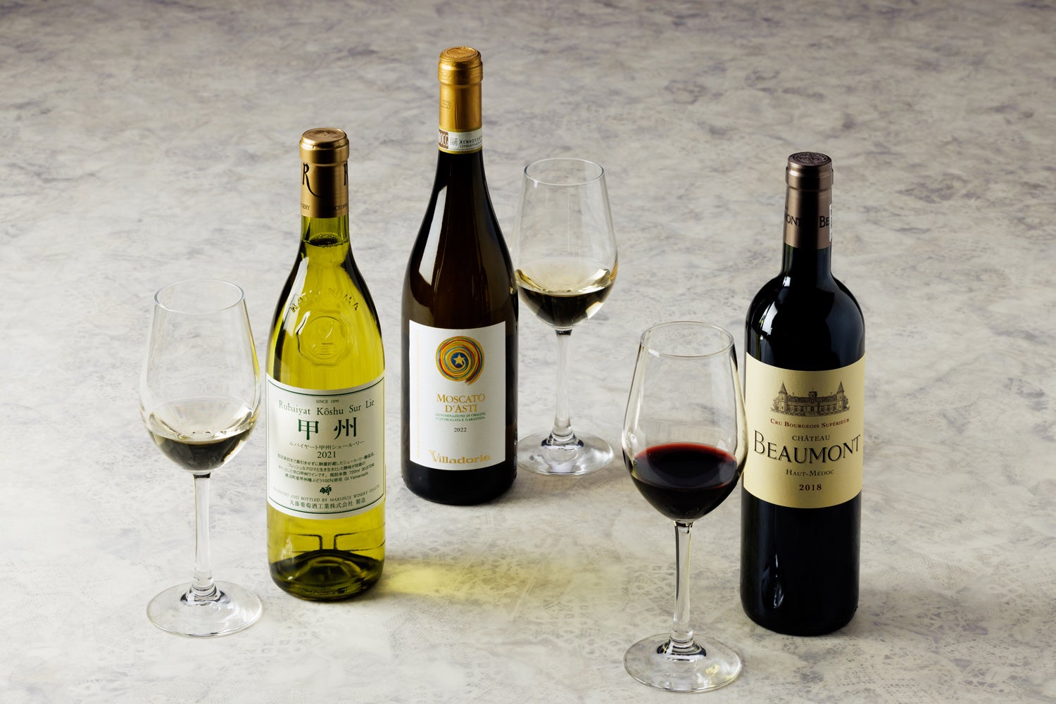 さらに、特別なお食事の味わいを一層引き立てるドリンクメニューとして「周年記念 ペアリングワインセット」もご用意します。和洋それぞれのメニューに合わせ、レストランソムリエ 伊東延之が白・赤・デザートワインを厳選いたしました。