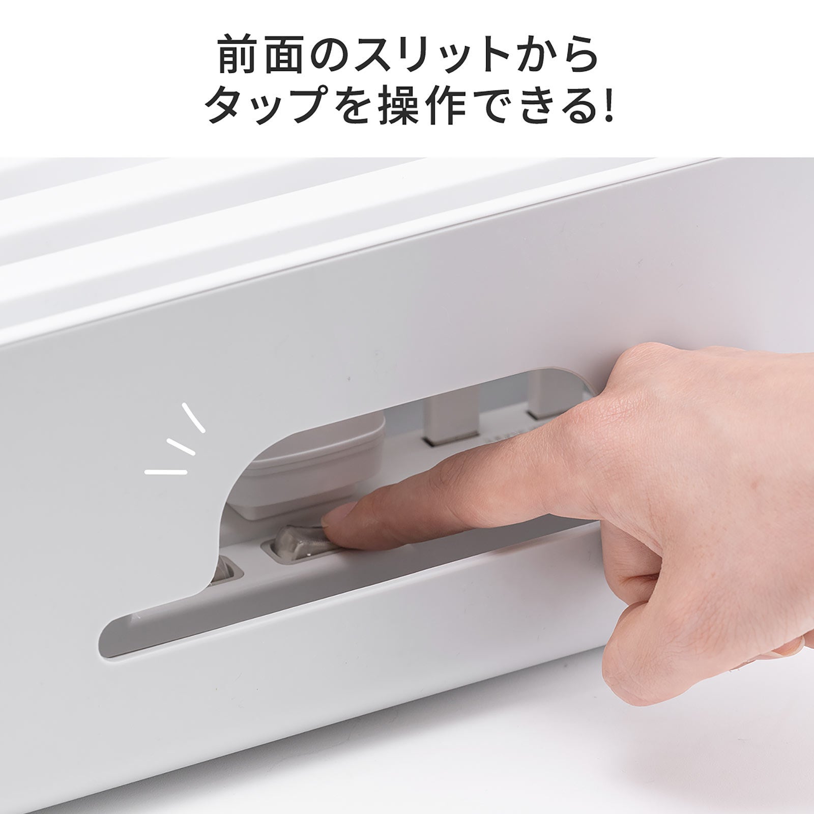 正面のスリットから、スイッチ付き電源タップの操作が可能です。