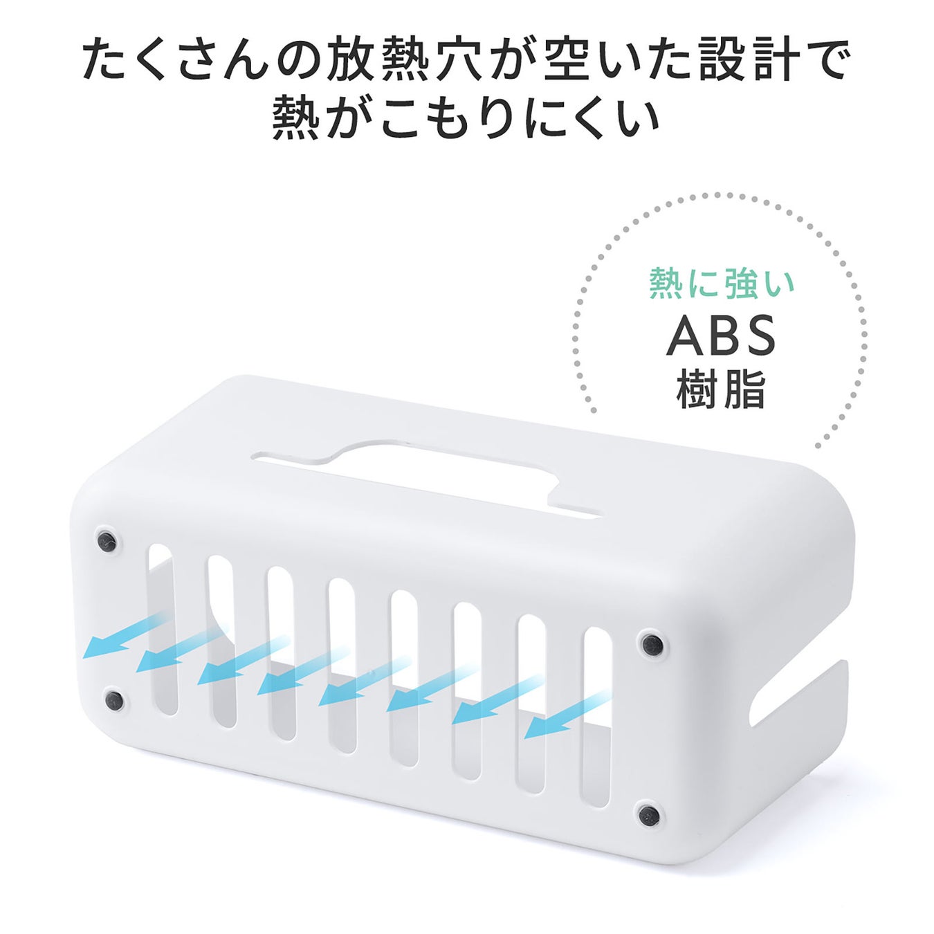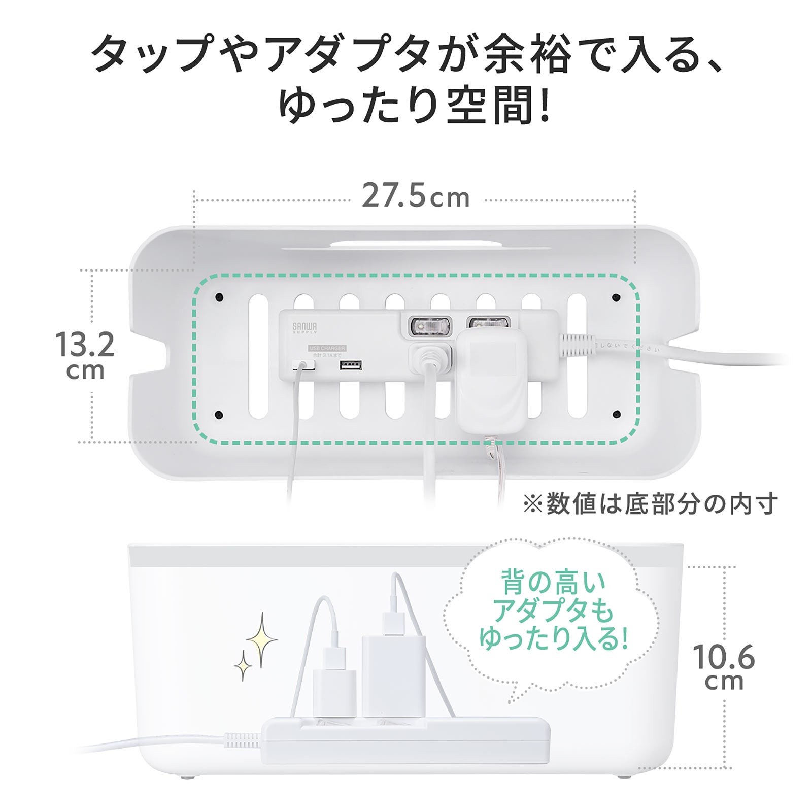 本製品は、電源タップやケーブルを入れられる収納ボックスです。