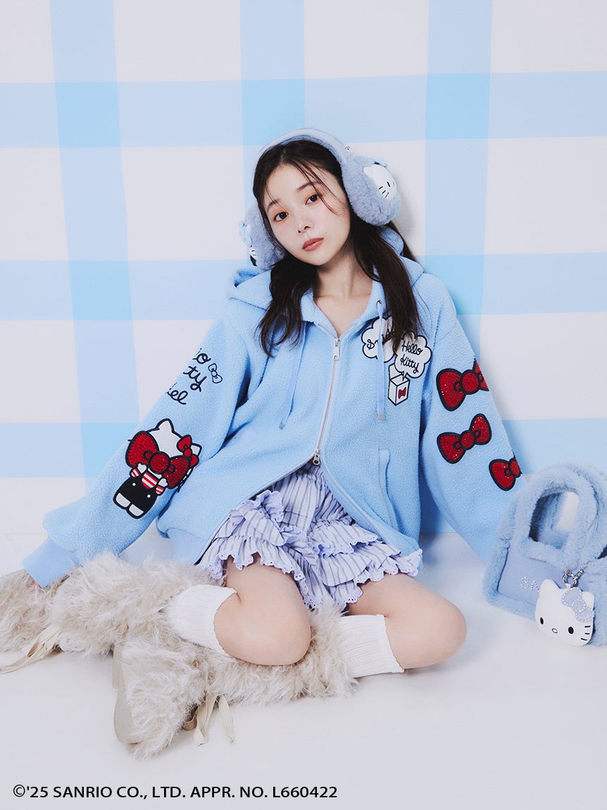 ハローキティのトレードマークであるリボンをテーマにしたボアパーカー。