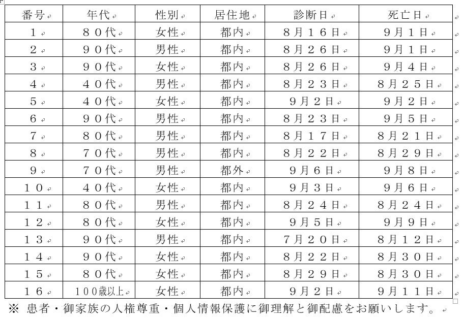 都内で新型コロナウイルスに感染した方が死亡されましたのでお知らせします。
