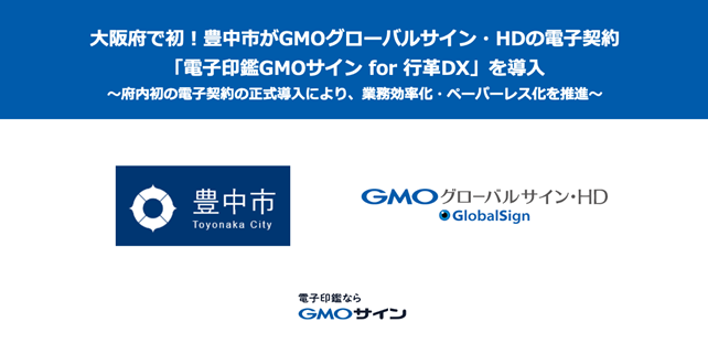 大阪府で初!豊中市がGMOグローバルサイン・HDの電子契約「電子印鑑GMOサイン for 行革DX」を導入