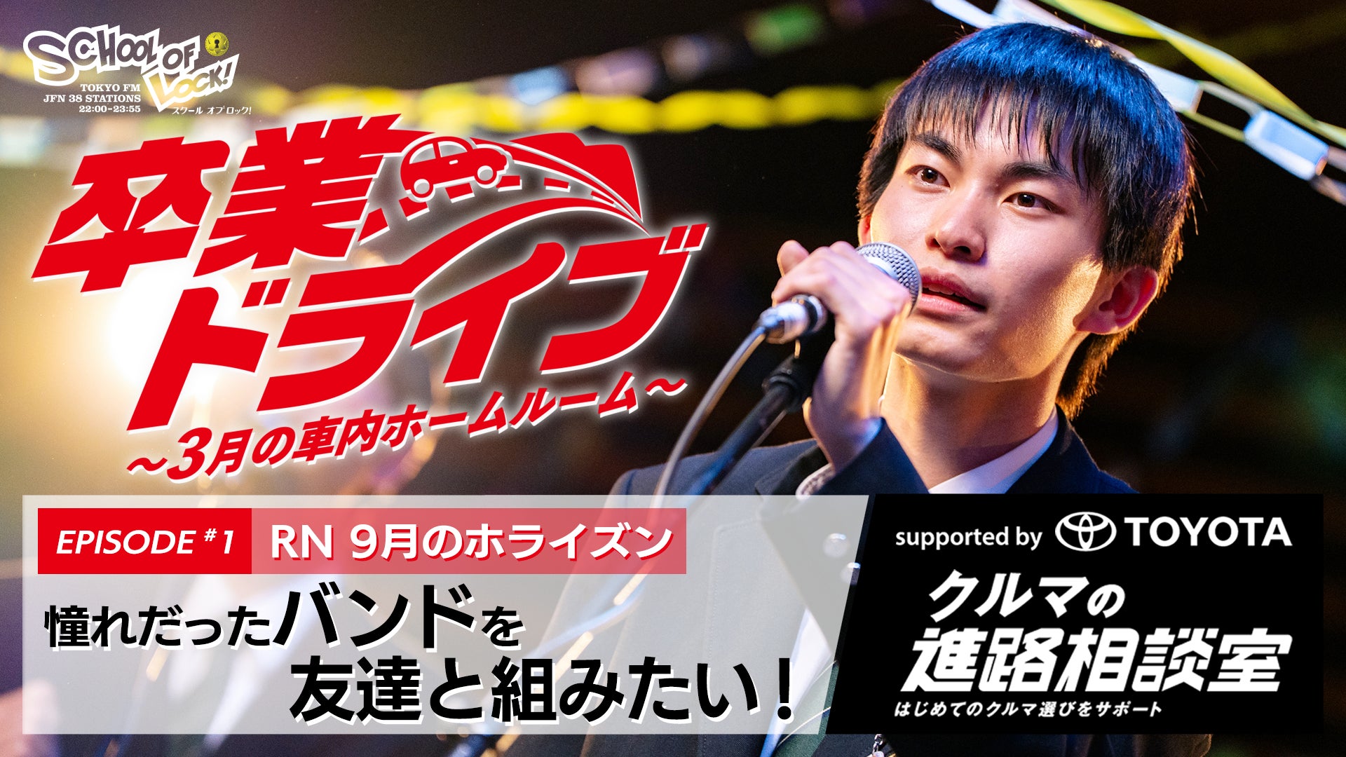 TOKYO FMをはじめとするJFN38局で放送中の10代向けワイド番組『SCHOOL OF LOCK!』(月-金22:00~23:55放送)は、トヨタ自動車株式会社(以下、トヨタ)が展開する『クルマの進路相談室』とコラボレーションし、卒業を迎える高校3年生の“卒業ドライブ”をテーマにクルマを通じて“今しかできない思い出づくり”をサポートするスペシャルムービーを特設WEBサイトで公開いたします。