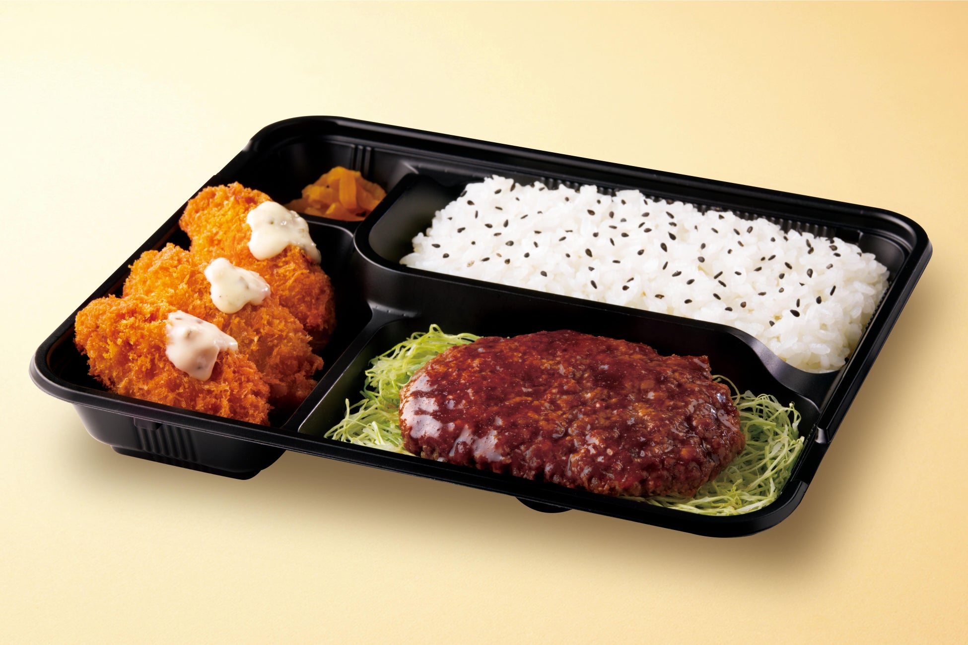 エビフライ・唐揚げ・白身フライがセットになった「Dx直火焼デミハンバーグ弁当」、生姜焼きがセットになった「直火焼デミハンバーグ生姜焼き弁当」、カキフライがセットになった「直火焼デミハンバーグカキフライ弁当」や、おかずだけの「直火焼デミハンバーグ」もご用意しております。