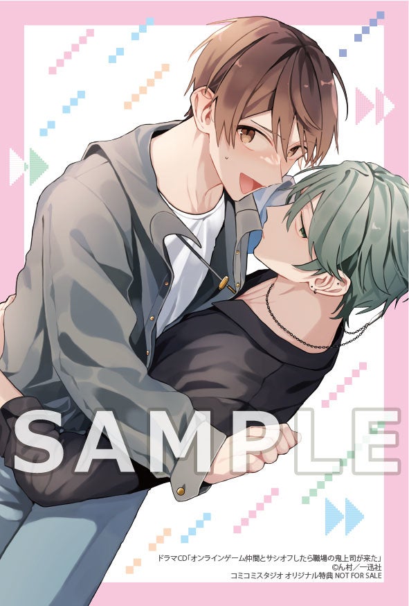 ドラマCD「オンラインゲーム仲間とサシオフしたら職場の鬼上司が来た」より、各法人の特典見本画像が公開♪