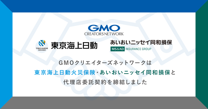 GMOクリエイターズネットワークが、東京海上日動火災保険・あいおいニッセイ同和損保と代理店委託契約を締結