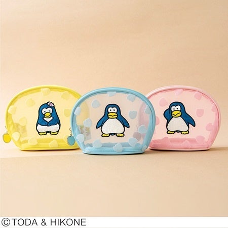 パピプペンギンズのパックとピッキーの刺しゅうがほどこされた、透け感がかわいいメッシュポーチです。